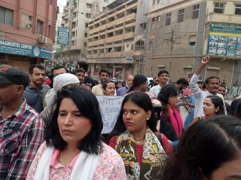 کراچی، انکلسریا اسپتال کے باہر آج ایک پُرامن احتجاج ہوا جس میں شانتی کماری مہیشوری کے اہلِ خانہ، سماجی کارکنان، ہندو برادری کے افراد اور شہریوں نے شرکت کی۔ مظاہرین نے اسپتال انتظامیہ اور ڈاکٹر فاروق شیخ کے خلاف شدید غم و غصے کا اظہار کیا، جن پر الزام ہے کہ انہوں نے شانتی کماری کو آئی سی یو میں انتہائی تشویشناک حالت میں ہونے کے باوجود اسپتال سے ڈسچارج کر دیا۔