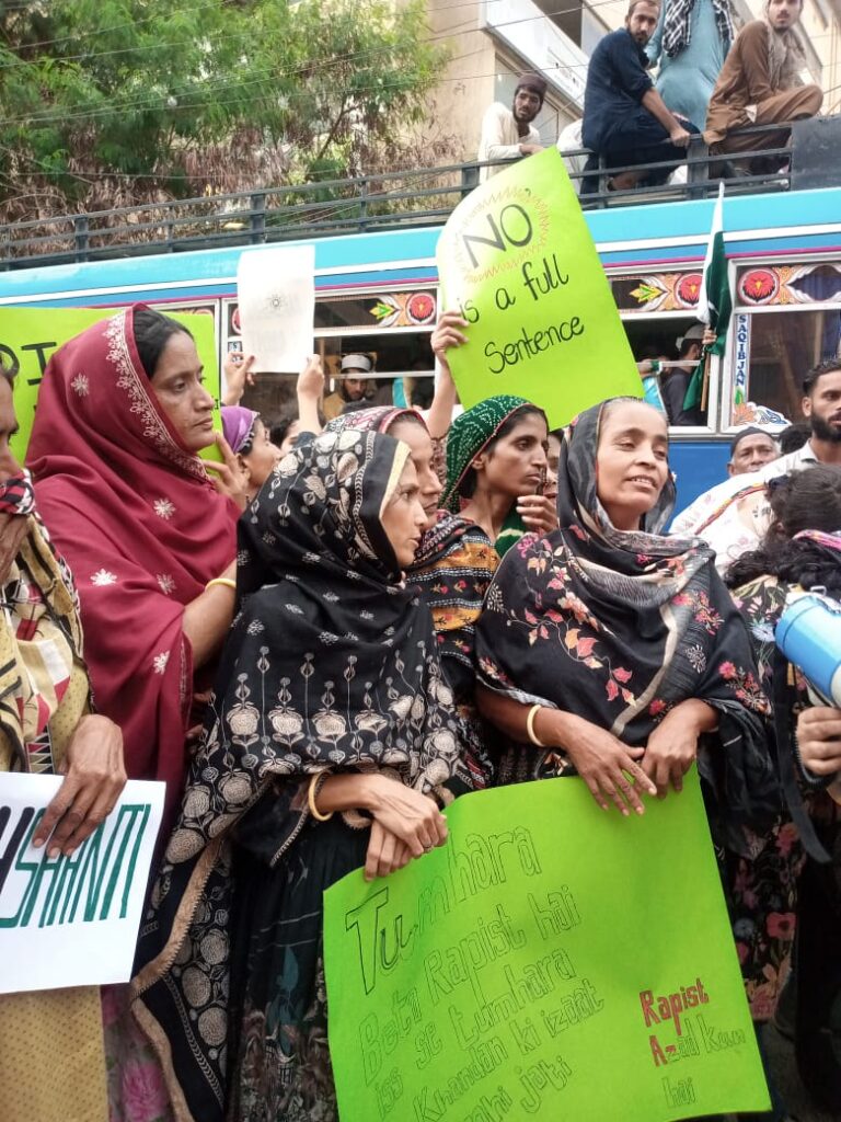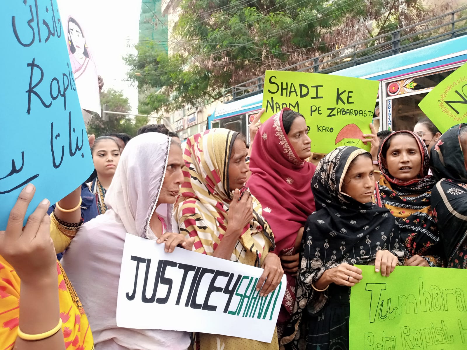 ویمن ایکشن فورم اور عورت مارچ کے کارکنان نے بھی کراچی پریس کلب کے باہر احتجاج کیا، اور میریٹل ریپ کے خلاف قانون سازی کا مطالبہ کیا۔ مظاہرین کا کہنا تھا کہ ایسے واقعات میں ملوث افراد کو سخت سزا دی جائے تاکہ آئندہ کوئی بھی عورت اس قسم کے ظلم کا شکار نہ ہو۔
